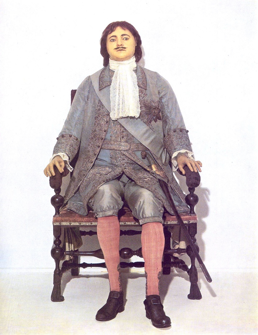 Вероятно, многим известна находящаяся в коллекции Государственного Эрмитажа «восковая персона» Петра I – созданное Б. Растрелли из воска после смерти императора его изображение в натуральную величину. С момента своего создания и до начала 2000-х гг. скульптура была одета в подлинный костюм Петра Великого, пошитый для его участия в коронации Екатерины Алексеевны в 1724 г.
