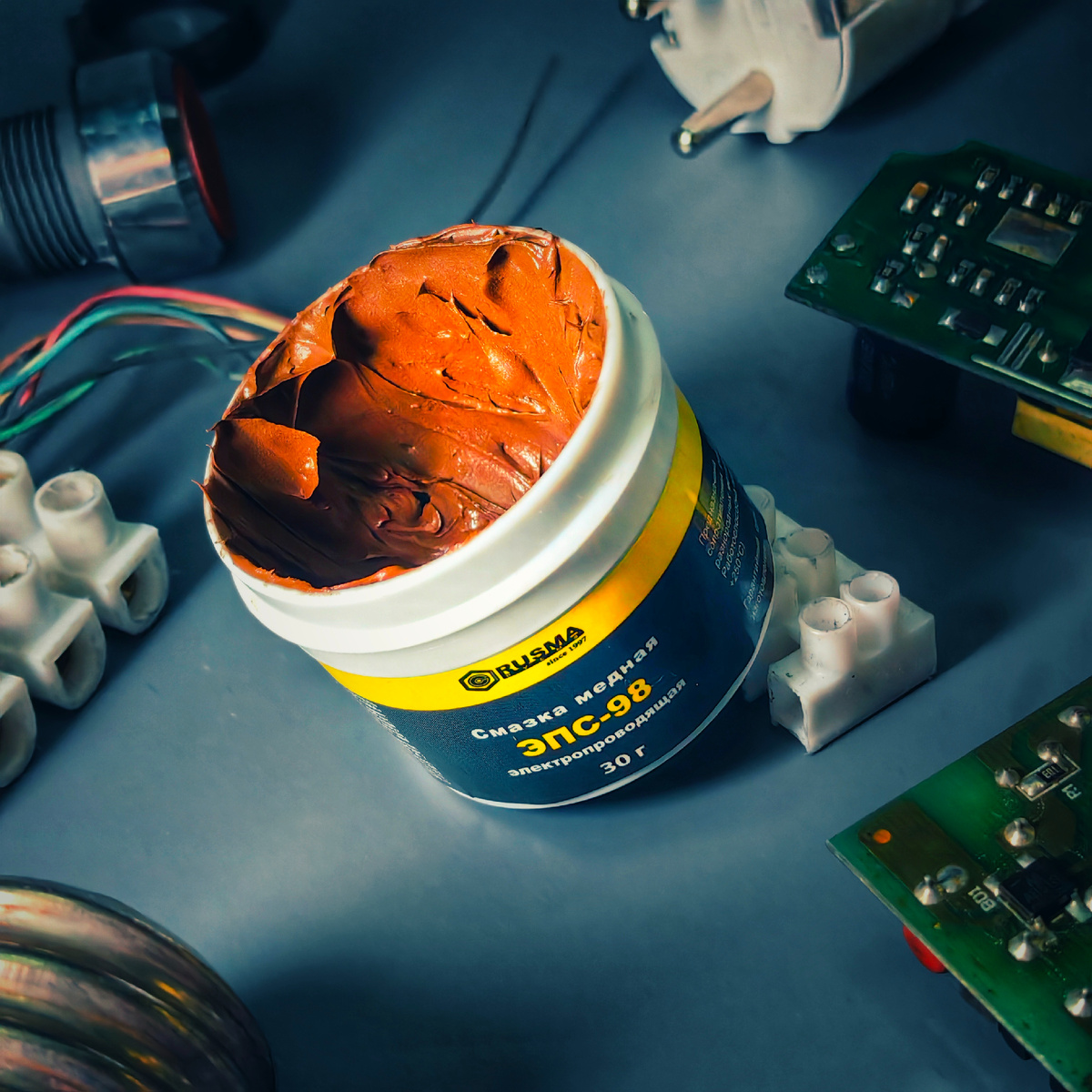 -Паста медная «РУСМА HSC Plus»: предназначена для снижения и стабилизации электрического сопротивления разборных контактных соединений из однородных и разнородных металлов Работоспособна от –30 до +250ºC, кратковременно до +350°C, за счёт температурной устойчивости твёрдых составляющих до +650ºC.