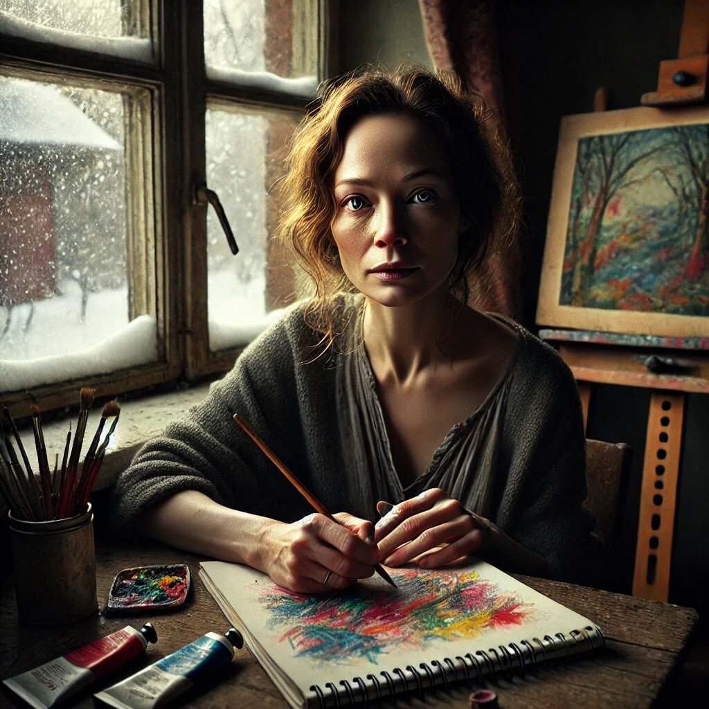 — А ты помнишь, как мечтала стать художником? — спросила Марина, осторожно откладывая в сторону чашку с чаем. Свет от лампы мягко падал на её лицо, подчёркивая лёгкие морщинки у глаз. — Твои рисунки были потрясающими. Анна усмехнулась, поправляя выбившуюся из хвоста прядь волос. — Марин, ну о чём ты? Мне 37, я бухгалтер, и в моём мире место только цифрам. Она посмотрела на руки — когда-то их любили называть изящными, а сейчас они выглядели натруженными, как у всех, кто ежедневно печатает на клавиатуре. Марина молчала, но в её глазах читалось: “Почему ты так отказываешься от себя?”. Анна перевела взгляд на окно — за стеклом серело, снег ложился на асфальт тонкой плёнкой, предвещая приход зимы. На миг ей показалось, что она слышит, как где-то в подсознании бьётся вопрос: а если бы?.. Мечты — это красиво, но они редко кормят. Художественная школа, где её хвалили за талант и предлагали участвовать в конкурсах, осталась где-то там, в пыльных уголках памяти. Замуж она вышла в 25. Муж, Алексе