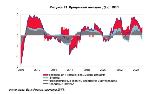И вот, по последним данным, этот фактор тоже сдвинулся с мертвой точки: в своем свежем обзоре "О чем говорят тренды" ЦБ отмечает замедление кредитного импульса.