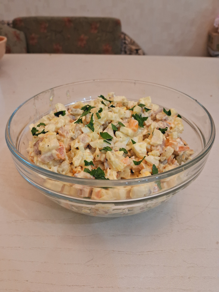 Салат с сельдью из простых продуктов. Обязательно стоит попробовать.