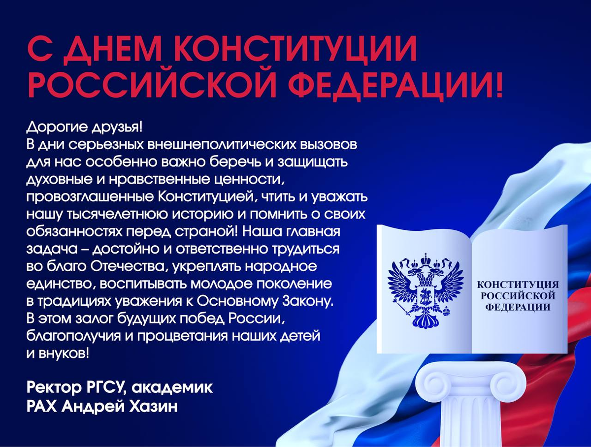 Поздравление с Днем Конституции Российской Федерации ректора РГСУ, академика РАХ А.Л.Хазина
