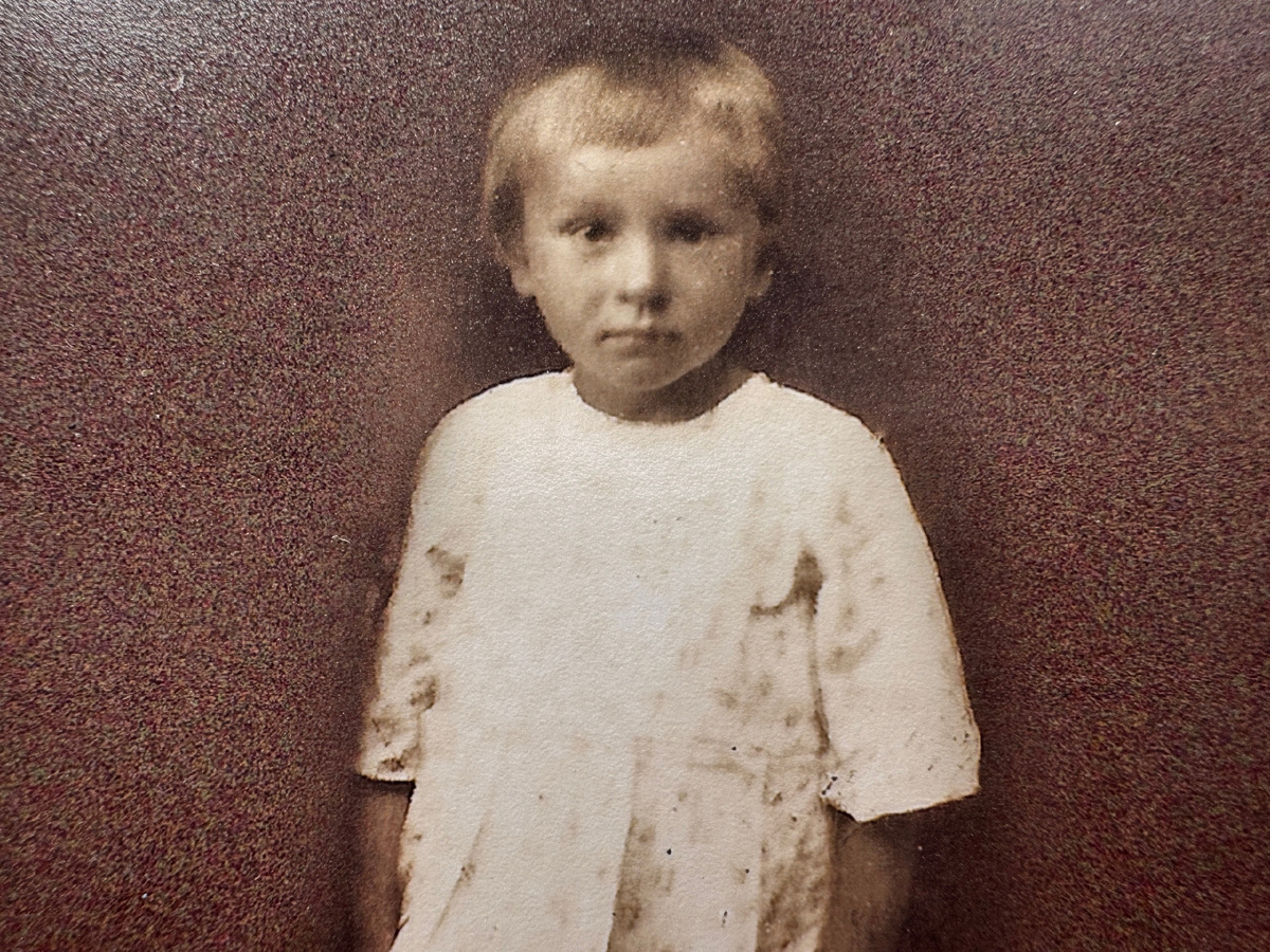 В левой руке я держу цветочек. Вот откуда у меня тяга к цветам, с самого раннего детства.