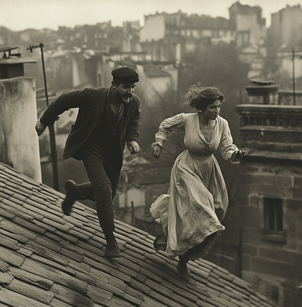 Мы уже почти добрались до крыши, когда балкон внизу внезапно наполнился серыми и черными мундирами. Повинуясь внезапному порыву, я оторвал огромный обломок от ближайшей сильно треснувшей кирпичной трубы, и швырнул его в гущу наших орущих преследователей. Пыль поднялась двумя отдельными облаками, импровизированная бомба сбила агента, направившего вверх свой револьвер и целящегося в нас.