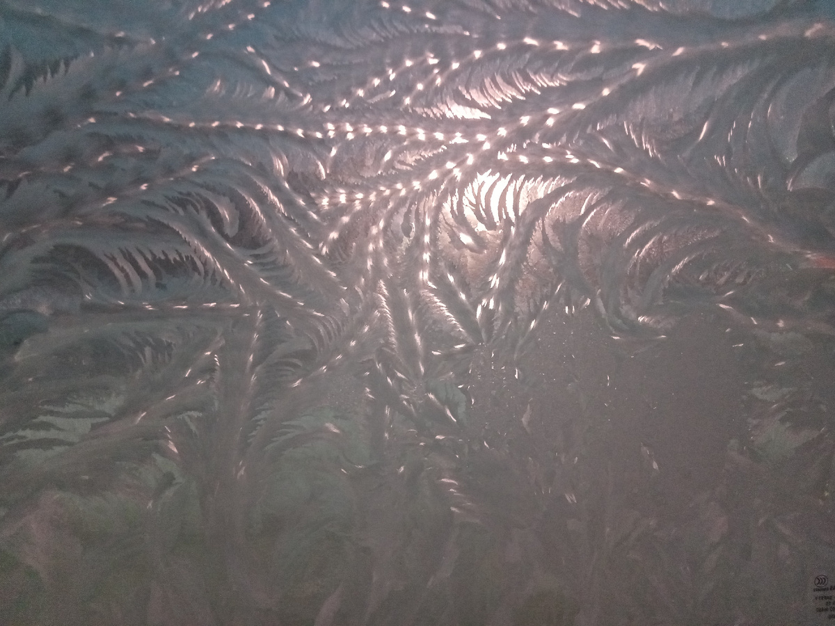 Это виды из окон маршрутки. Так было холодно с ночи. Но в салоне нормально. Как в картинной галерее деда Мороза.)