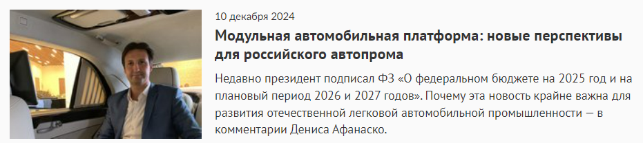 Недавно президент подписал ФЗ «О федеральном бюджете на 2025 год и на плановый период 2026 и 2027 годов», в рамках которого определен размер госсубсидии на разработку отечественной унифицированной модульной платформы автомобилей для массового потребителя. На единой платформе, как предполагается, будут собираться автомобили гольф-, среднего и бизнес-класса. Эта новость крайне важна для развития отечественной легковой автомобильной промышленности. Почему — в комментарии эксперта «ВЦИОМ-Консалтинг» по автомобильной отрасли «ВЦИОМ-Консалтинг» Дениса Афанаско.