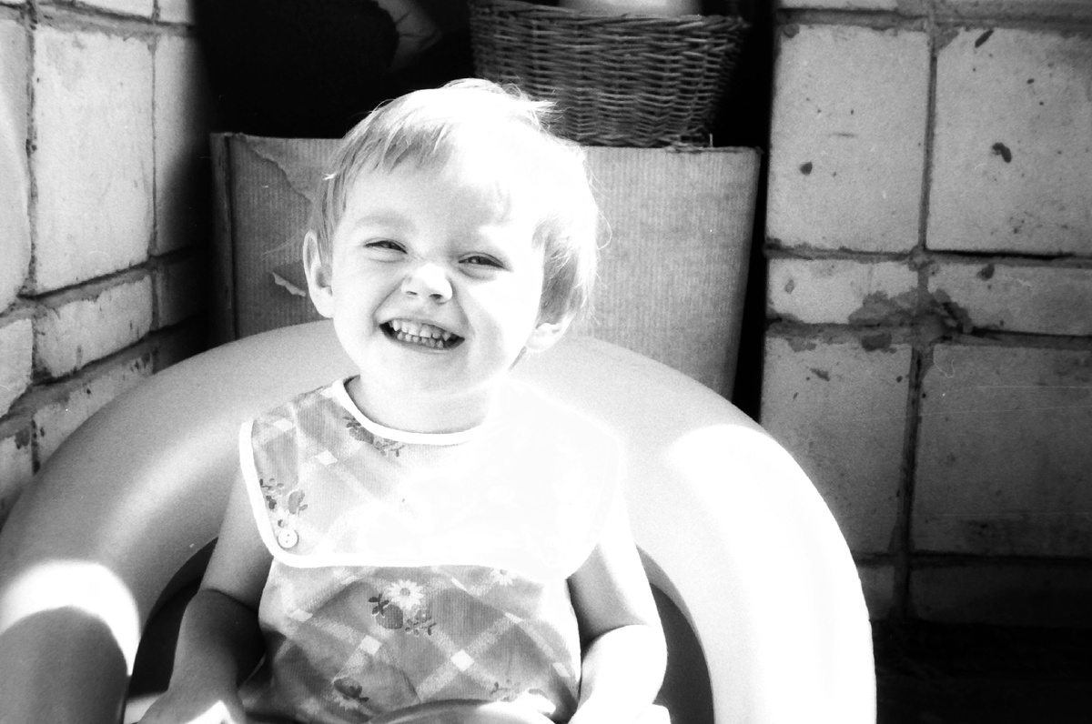 Я искренне считаю, что ничего нет интереснее старых фотографий. У моей семьи, к счастью, большой фотоархив, и я рада им поделиться. Итак, плёнка первая. 40 лет тому вперёд, моё детство в Новосибирске. Новосибирский Академгородок, наша квартира. Я сижу на балконе (обычный балкон типовой советской девятиэтажки, пол, помню, был холодный). У меня надувное кресло и надувной телефон! Кажется, оба красные с голубым. Очень здорово было сидеть в этом кресле, жевать салат из редиски со сметаной и рассматривать антенны на крыше дома напротив. Антенн торчало шесть, по числу подъездов, и я до сих пор могу нарисовать каждую из них. Три совершенно антропоморфные, похожие на пляшущих человечков у Конан Дойля, динозавр с задранным хвостом, Самоделкин из «Веселых картинок», но о двух головах, и танцующая пара, очень страшная. Сколько-то лет спустя я увидела в книжке гравюру Вольмегута – один в один: антенны танцевали dance macabre. А здесь у меня в руках замечательные вещи: машинка и пластиковая ванночк