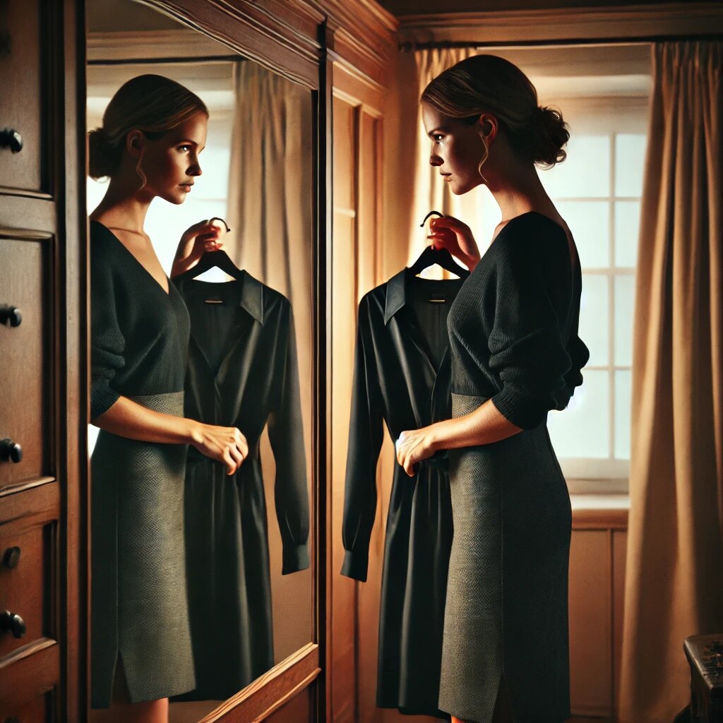 Ольга стояла перед зеркалом, держа в руках чёрное платье, которое она когда-то купила на пике своего вдохновения. Оно висело в её шкафу уже десять лет. Тонкая ткань приятно холодила кожу, словно дразнила: «Ну что, решишься?». Но она каждый раз откладывала это решение на потом. Сегодня платье снова оказалось в её руках, потому что Настя уговаривала её устроить генеральную уборку в гардеробе.