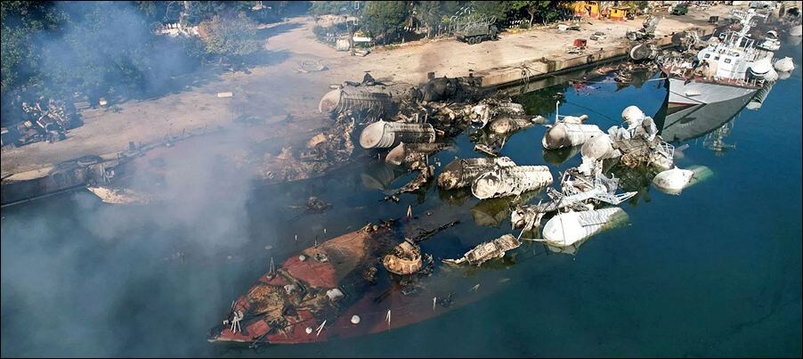 Кстати, опять вернёмся к старой теме, обратите внимание - стальные корпуса остались целыми, а надстройки из алюминиевого сплав выгорели полностью.