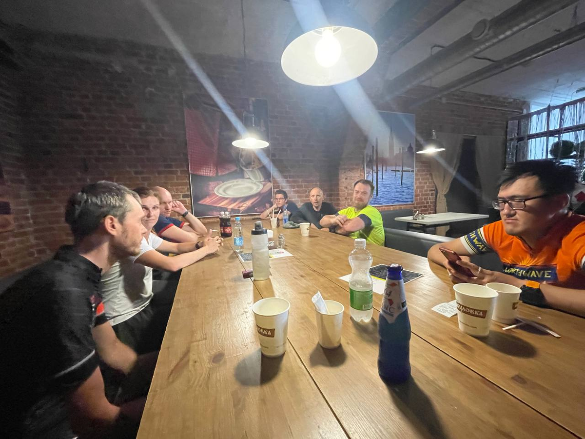 Город Сортавала начался встречей с, не побоюсь этого слова, титанами велотуризма! Мы сидели в кафе с Александром Овчинниковым, Алонсо и другими легендами тура юнайт, я расспрашивал, как проехать 4 сегмента, какие там сложности и что стоит учесть. Матерые охотно делились советами, как можно преодолеть Цымлянские пески (спойлер - советы не помогли), а меня волновал юг, так как я в тот момент был на камерных шинах. После кафе мы поехали в парк на ночевку и мне пришлось собирать Айрата на берегу и с красивейшим закатом. ( НЕ ВЕРИТЕ СМОТРИТЕ САМИ https://dzen.ru/video/watch/6570936ab52b316f42a10f97) Встали на ночевку в палатках в парке города, комаров много, северные. Ты его бьешь и чувствуешь, как у него ноги ломаются. Легли дружно, без шума, только проходящие прохожие в парке мешали отдыху громкими разговорами. Утро старта. Все проснулись и, по-военному быстро и ловко, стали собираться. Такой темп сборов для меня был в новинку, и я сильно отставал. Я бы посоревновался с ними после 40-го
