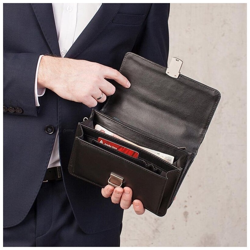 Секретарша складывала в сумочку телефон и кошелёк.