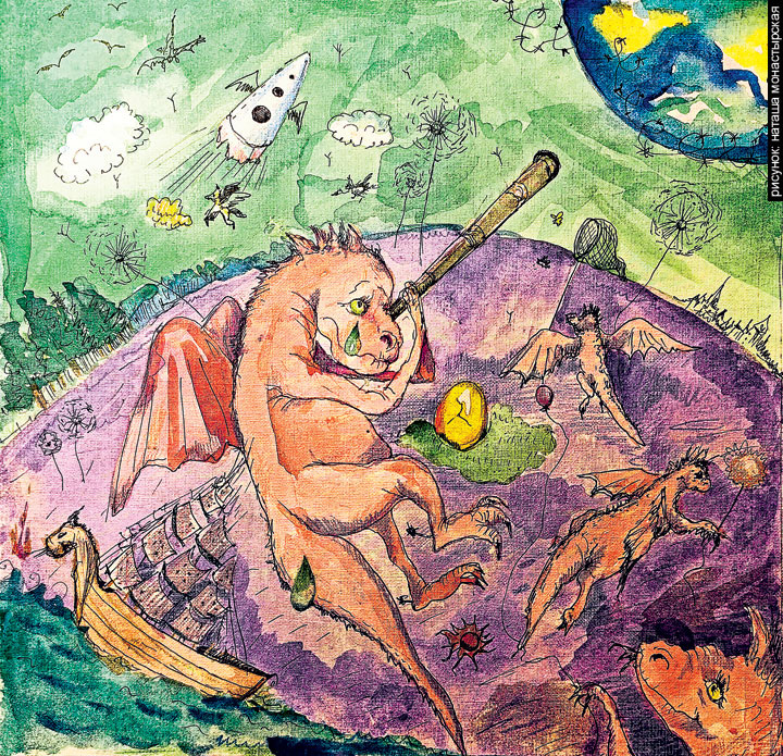 Для экспедиции отобрали самых лучших, самых умных драконов. Полетела даже одна драконья семья. Муж, жена и маленькое прозрачное яичко с крошечным дракончиком внутри. Они положили яичко в специальный контейнер и взяли с собой. Они летели долго, много световых лет. Но это по земным меркам. А для драконов это был всего один час. У них совсем другое время.