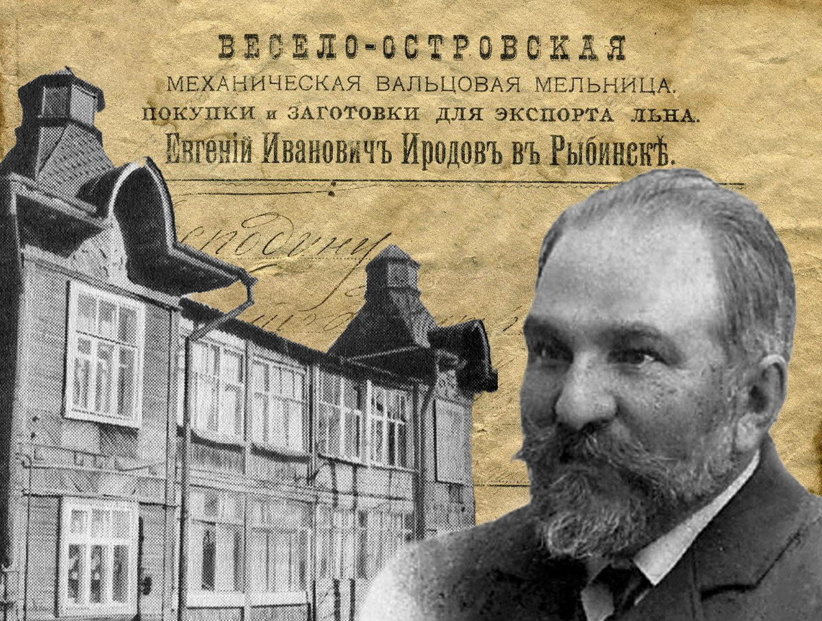 Преуспел Евгений Иванович и в еще одной традиционной для Бежецка сфере –производстве мешочного холста. Не секрет, что с середины XIX века чуть ли не весь волжский хлеб доставлялся в бежецких мешках, которые в большом количестве шили надомницы – мещанки и крестьянки окрестных селений. Огороднов сообщает, что Иродов имел причал в Рыбинске и Воронеже, «где потом купил мельницу и мучную торговлю свою присовокупил». В собрании Рыбинского музея хранится почтовый конверт от письма с механической вальцовой мельницы Е.И. Иродова, которая называлась «Весело-Островская».