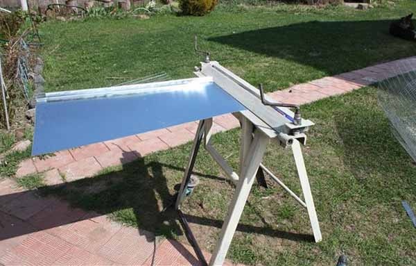Наиболее простым является устройство, которое обрабатывает металлический лист при помощи специальной траверсы.
