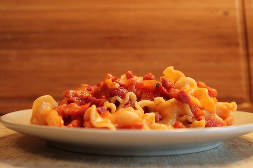 Ещё рецепт для программы Экспресс, о программе подробнее рассказывала здесь 👇, под ссылкой коротенечко напишу Экспресс (не во всех мультиварках, но попробуйте, может в вашей есть) включается без захода в меню - сразу нажать (иногда удерживать пару секунд) кнопку Старт. На программе нет времени, на табло высвечивается "змейка" (разные варианты). Программа сама отключается через некоторое время (15-30 мин). Конечно, можно отключить (прервать работа программы) и обычным способом. Так-с, а я продолжаю про макароны. Программа Жарка 25 мин, Экспресс 15мин Продукты Грудинка 0,5 кг Макароны 250 грамм Луковица 1 шт Перец болгарский (у меня замороженный) Помидор (у меня помидорки резаные в собственном соку) Масло для жарки (у меня спред Кремлевский) Соль - с ней осторожней, грудинка достаточно соленая. Включить программу Жарка, немного разогреть чашу. Лук, помидор, грудинку, болгарский перец жарить в любой последовательности. Если первой будет грудинка, то масла вообще не нужно. Я начала