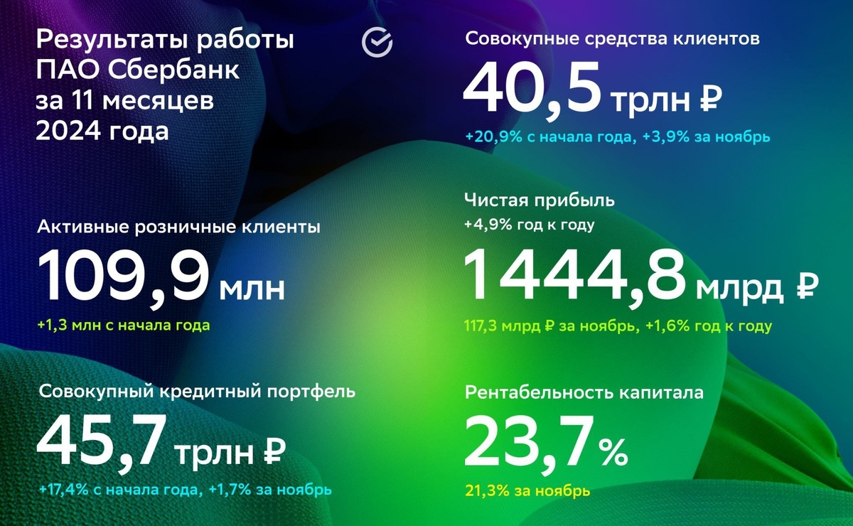 Сбер отчитался за ноябрь 2024 г. — кредитование снижается высокими темпами, но прибыли помогли прочие доходы.