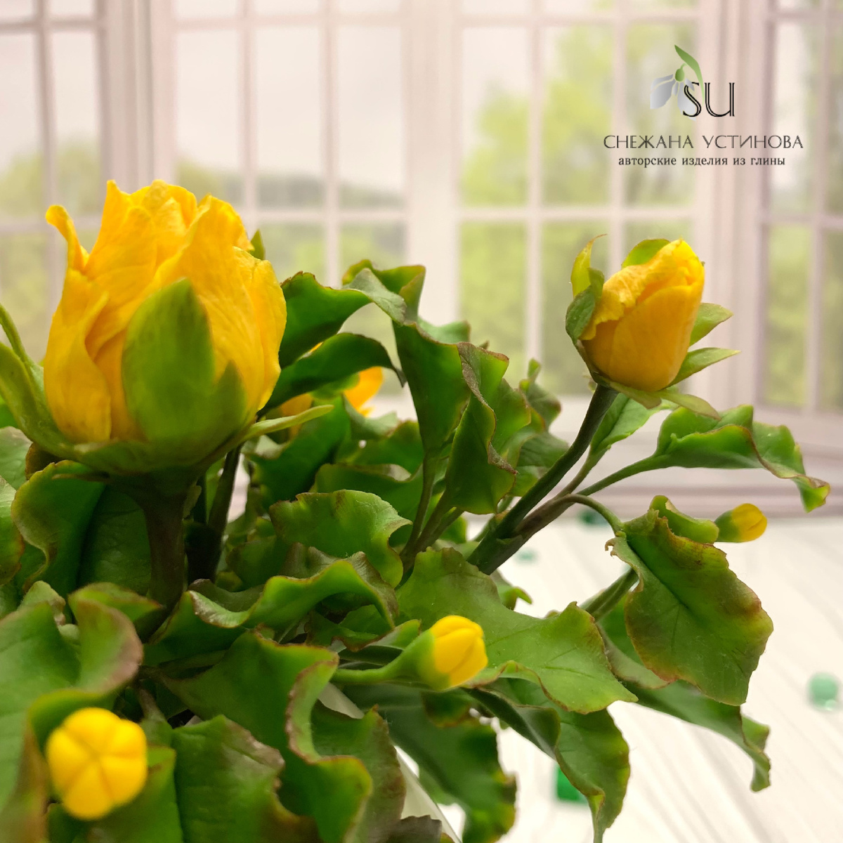Сегодня я хочу поделиться с вами историей создания моей композиции из холодного фарфора под названием "Оазис". Это произведение искусства родилось в моей мастерской и, как и все прекрасные вещи в жизни, имеет свою особенную историю. Когда я только начинала работать над этим букетом, мне казалось, что я занимаюсь алхимией. Холодный фарфор в моих руках превращался в нежные лепестки желтых роз. Цветы, не боящиеся увянуть и сохранившие свое утреннее очарование навсегда. Представь только - розы, которые не боятся зимнего холода и весенних дождей! Думаю, именно поэтому называю их своим личным "оазисом". Каждый лепесток выкроен вручную, и каждое прикосновение приносило радость. Было несложно почувствовать себя волшебницей, видя, как из беспорядочных кусочков глины появляется целое цветочное чудо. Помимо роскошных роз, я добавила в композицию несколько бутонов и зелени, чтобы придать ей живость и естественность. Зеленые листочки, как маленькие стражи, оберегают цветы и дополняют их игривыми о
