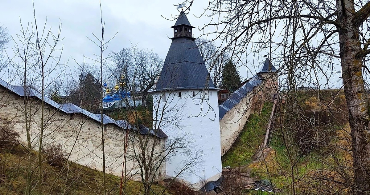 В Псково-Печерском монастыре продолжаются работы по реставрации крепостных стен