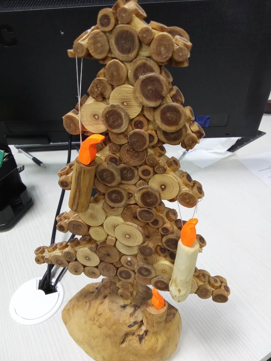 Продолжаю тему изготовления новогодней елки своими руками. Вот такая елка теперь стоит у меня на рабочем столе. Сделал несколько лет назад. Игрушки (свечки) сделаны в этом году кусок фанеры от ремонта, спилы деревьев и сувель березы. Пилил пилой типа японской. Хотя реально, конечно, нашего восточного партнера. Ей можно отпилить довольно тонкие спилы. Клеил на американский ПВА. сейчас уже и не вспомню какие породы деревьев использовал, но их было около семи штук. Сувель, как обычно, сушился около двух лет. Заворачивая в бумажные полотенца и в полиэтиленовые пакеты. Вот скоро подойдут следующие. Нужно будет делать очередные поделки. Подписывайтесь на мой канал и я покажу, что еще сделал из дерева.
