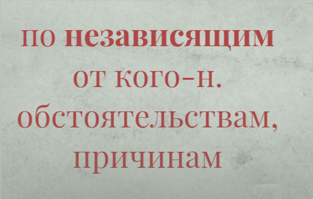 по независящимъ (отъ кого) обстоятельствамъ (иноск.) вынужденно