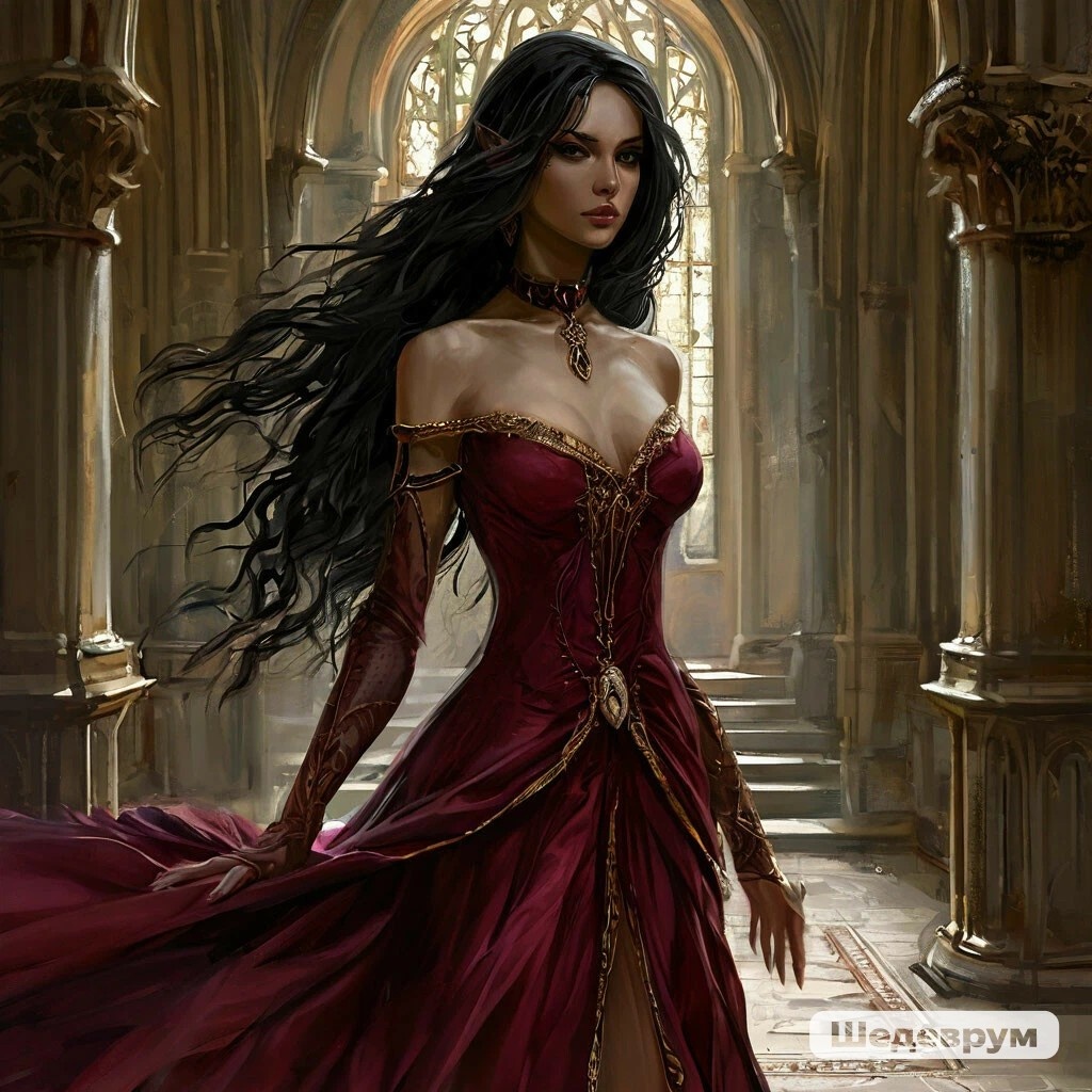 Кассандра хотела что-то сказать, но тут в арке из темных подземных цветов появилась потрясающе красивая темная эльфийка в пышном черном с золотом платье и с распущенными волосами и по залу прокатилась волна силы. Все темные эльфы тут же склонили головы, приветствуя свою богиню.