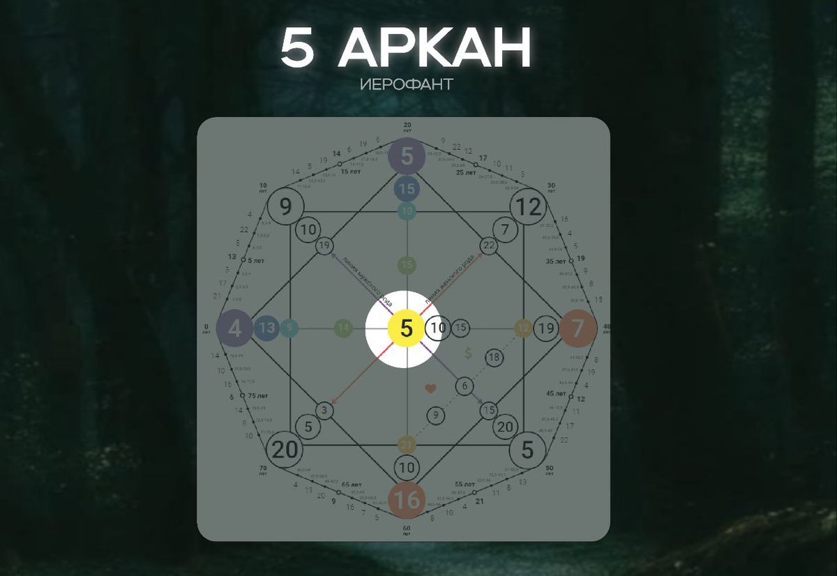 Рассчитать свой аркан 5 аркан в матрице судьбы соответствует карте "Иерофант" в Таро. Этот аркан символизирует традиции, духовность, знания и мудрость. Он олицетворяет поиск смысла жизни, духовное развитие и стремление к обучению. Люди, находящиеся под влиянием 5 аркана, часто обладают глубокими моральными и этическими убеждениями и могут быть наставниками для других. Они ценят традиции и могут быть связаны с религией, философией или другими системами верований. 5 аркан также указывает на важность общения и передачи знаний, что делает его символом учительства и духовного роста.