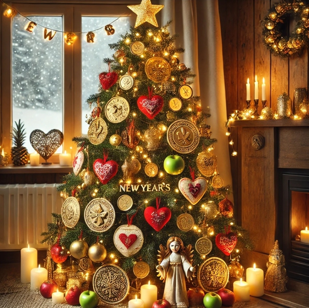 Новогодняя ёлка — это не только украшение, но и мощный символический инструмент, который можно использовать для привлечения благополучия в разные сферы жизни. Если подойти к её оформлению осознанно, то каждый элемент может стать магнитом для здоровья, любви, финансового изобилия и внутренней гармонии. Вот как правильно выбрать символику для разных аспектов жизни. 1. Для денег и изобилия Золотые монетки или шары. Золотой цвет ассоциируется с богатством и успехом. Развесьте шары, похожие на монеты, чтобы активировать энергию изобилия. Ключи. Миниатюрные золотые или металлические ключики — символ доступа к возможностям и богатству. Денежные купюры или их копии. Заверните декоративные купюры в прозрачные шары или повесьте ленты с изображением валюты. 2. Для здоровья Зелёные элементы. Шары, ленты или звезда зелёного цвета символизируют здоровье, восстановление и силу. Фигурки яблок. Яблоко — древний символ здоровья и долголетия. Украсьте ёлку миниатюрными яблоками или гирляндой с их изобр