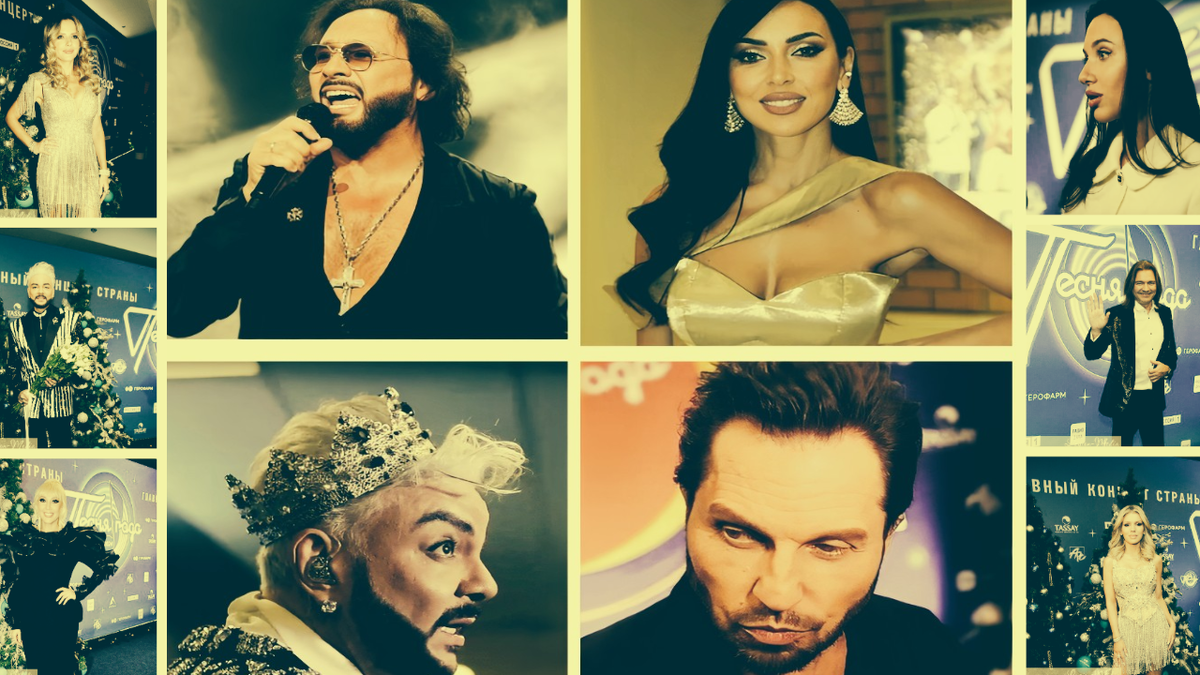 За год побывавшие в скандалах Ани Лорак, Лолита, Артур Пирожков (он же Ревва), Александр Владимирович, Александр Буйнов, у которого якобы несколько страшных диагнозов, и, конечно же, Игорь Николаев, который вышел в синем костюме вместе с не рукопожатой Кристиной Орбакайте, она была в жёлтом платье.