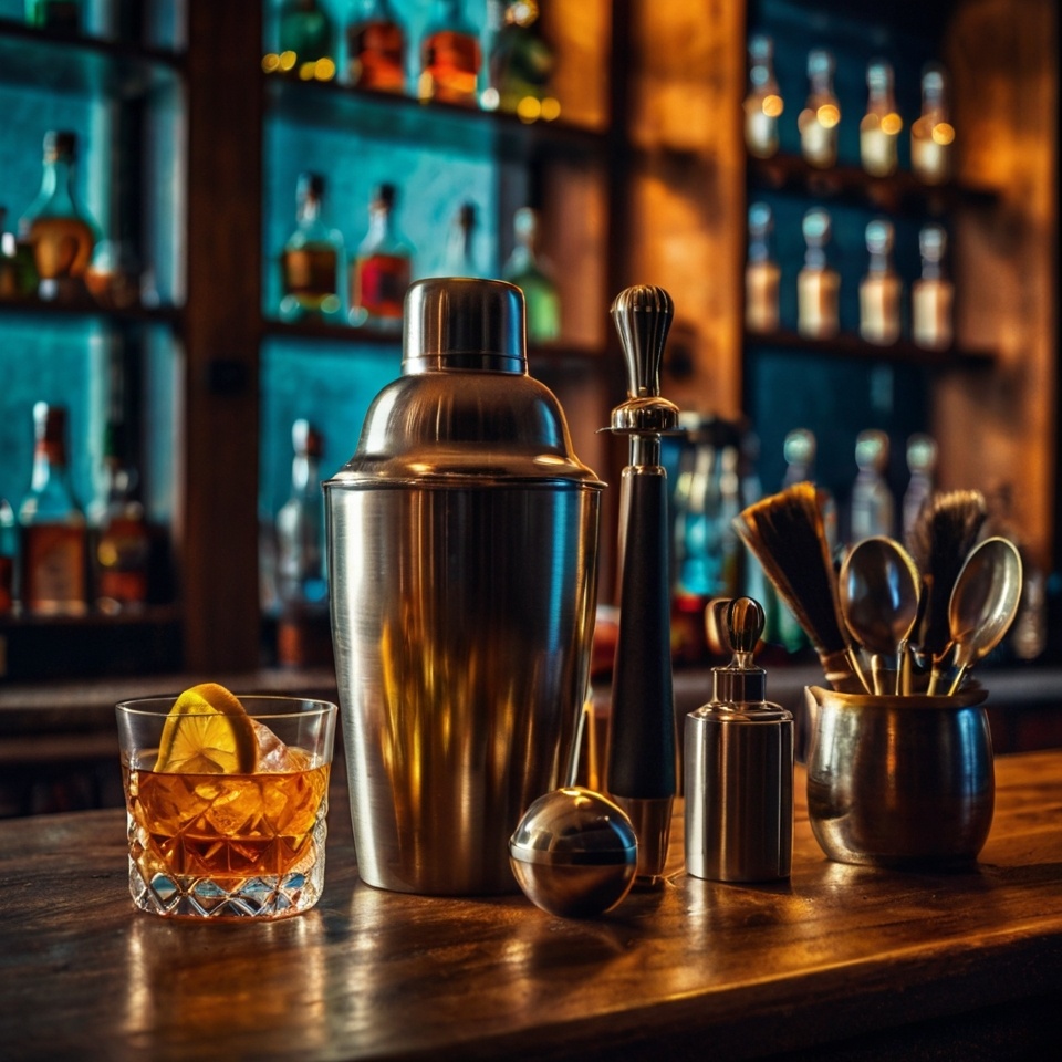 - Описание: Коктейльный набор обычно включает в себя шейкер (металлический или стеклянный), мерные стаканчики (джиггеры), барную ложку, фильтр и иногда дополнительные инструменты, такие как мадлер и открывалка для бутылок.