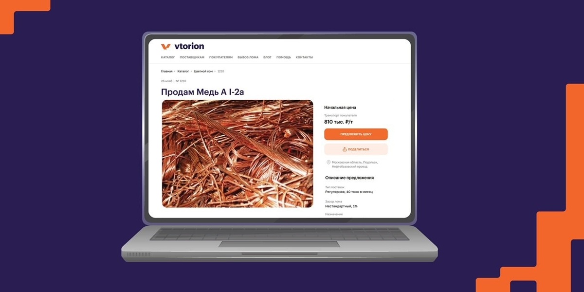 Цифровая платформа Vtorion запустила онлайн-сделки с ломом цветных металлов