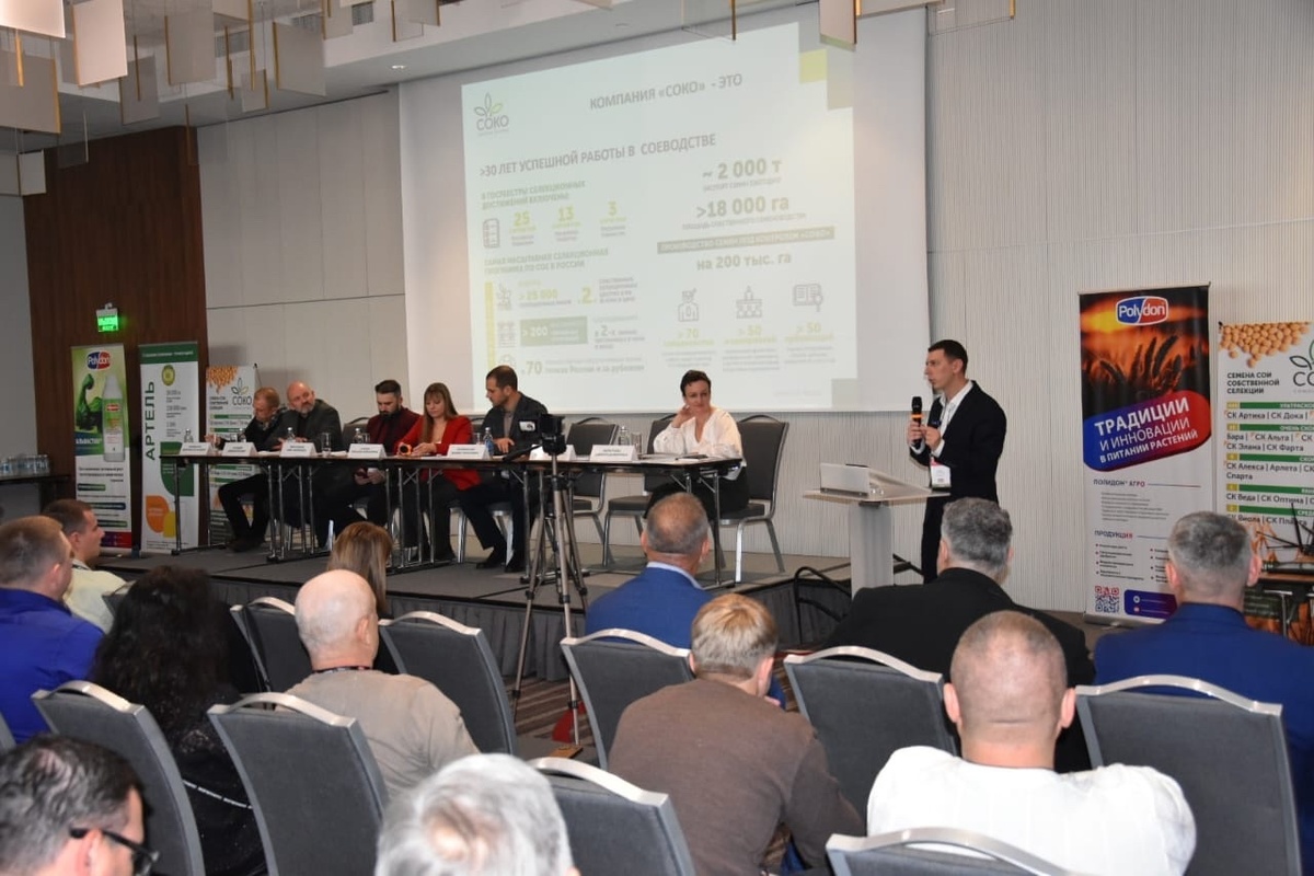 Куда движется селекция сои и как выбрать подходящие сорта? Об этом на IX Соевой конференции рассказал канд. с.-х. наук, руководитель отдела селекции компании «СОКО» Альберт Щегольков