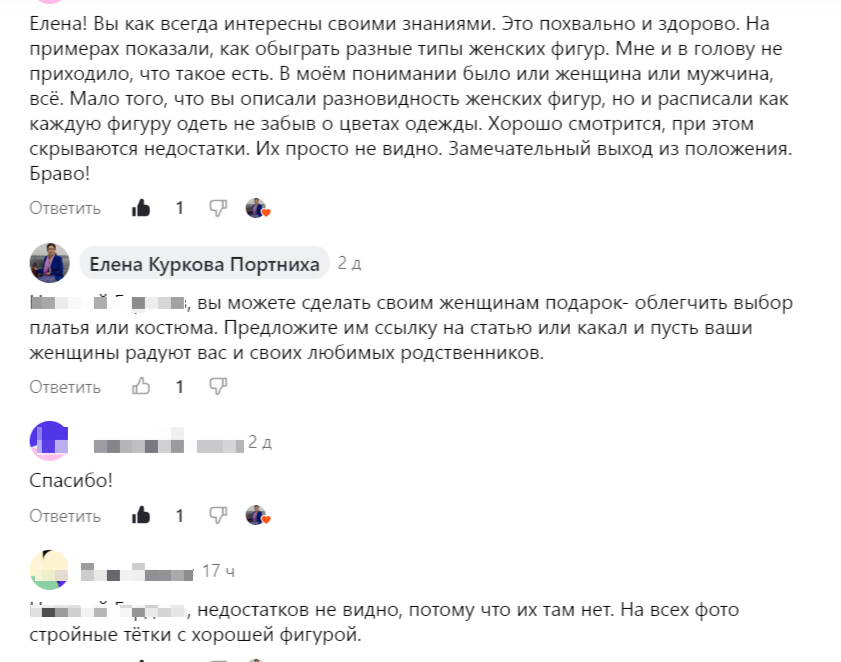 Так начинается комментарий под моей статей: "Развеиваем миф «Стиль только для худых» В чем проблема? Как читатель, мне бы тоже хотелось прочитать оне только о чувствах автора, но и увидеть то «чудо» из- за которого возникла эта тема. Но мы люди взрослые и нужно понимать, что жизнь так стремительно меняется. И мы не можем стоять на месте. Мы вынуждены идти в эту новую жизнь. Еще совсем недавно, чтобы попасть ко мне на прием и сделать заказ, люди с четырех утра стояли под дверями ателье, а ведь мне было всего двадцать лет. Мы с бригадой могли обслужить только семь человек в день, потому что физически больше не могли принять. У меня заказов было столько, что даже дома не было покоя ни в выходные, ни в праздники. Я до сих пор вздрагиваю и ненавижу праздники и стараюсь уйти с мужем или внуками в парк, на сопку, куда-нибудь, где меня не достанут заказчики. Мне и в голову тогда не приходило, что надо писать статьи, делать фотосессии. Я и социальные сети вела только для переписки со своими др