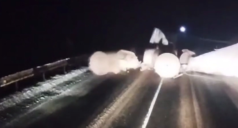Полиция опубликовала эпичное видео ДТП с грузовиком, перевозившим рулоны бумаги