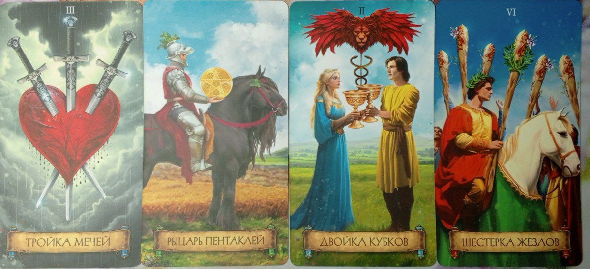 Мои дорогие, всем доброго утречка! Сейчас будем смотреть карту дня на 12 декабря. Что же нам советуют карты сегодня? Итак, на позицию ОТНОШЕНИЙ у нас выпала карта тройка мечей. Это карта какого-то разлада, это претензии, это обиды, это могут быть ссоры. Но не расстраивайтесь. Здесь нужно просто собрать волю в кулак и принять какое-то решение. Выяснить отношения. Да, возможно, что-то вы узнаете, то, что вам может принести страдания, душевную боль или слёзы. Но тем не менее, это карта правды, это карта, которая говорит о том, что вы, узнав о каких-то событиях, в конце концов, в итоге от них освободитесь. Далее, на позицию ФИНАНСОВ у нас выпала карта Рыцарь Пентаклей. Это карта трудяшки. Это сегодня у нас будет такое стечение обстоятельств складываться, что сегодня вы будете очень много проводить каких-то бесед с клиентами, заключать договора, контракты. Вы будете одновременно делать, возможно, несколько дел, и у вас будет всё спориться и ладиться. Вы сегодня справитесь и преодолеете вс