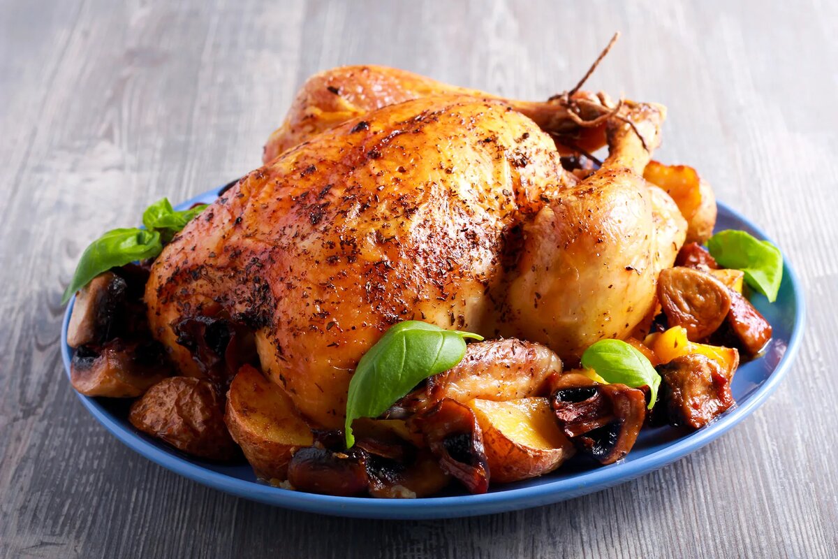 Это простое, но очень вкусное блюдо, которое прекрасно подойдет как для повседневного ужина, так и для праздничного стола. ### Запеченный цыпленок с лимоном и травами #### Ингредиенты: - 1 цыпленок (около 1,5 кг) - 2 лимона - 4-5 зубчиков чеснока - Оливковое масло — 4 ст. ложки - Соль и черный перец — по вкусу - Свежие травы (тимьян, розмарин, петрушка) — по вкусу - 1 чайная ложка паприки (по желанию) #### Приготовление: 1. **Подготовка цыпленка**: Промойте цыпленка под холодной водой и обсушите его бумажными полотенцами. Убедитесь, что внутри не осталось остатков перьев или внутренностей. 2. **Маринад**: В глубокой миске смешайте оливковое масло, сок одного лимона, измельченный чеснок, соль, перец и паприку. Добавьте мелко нарезанные травы и перемешайте. 3. **Маринование**: Обмажьте цыпленка полученным маринадом как снаружи, так и внутри. Оставьте его мариноваться на 30-60 минут при комнатной температуре или на несколько часов в холодильнике для более насыщенного вкуса. 4. **Подготовк