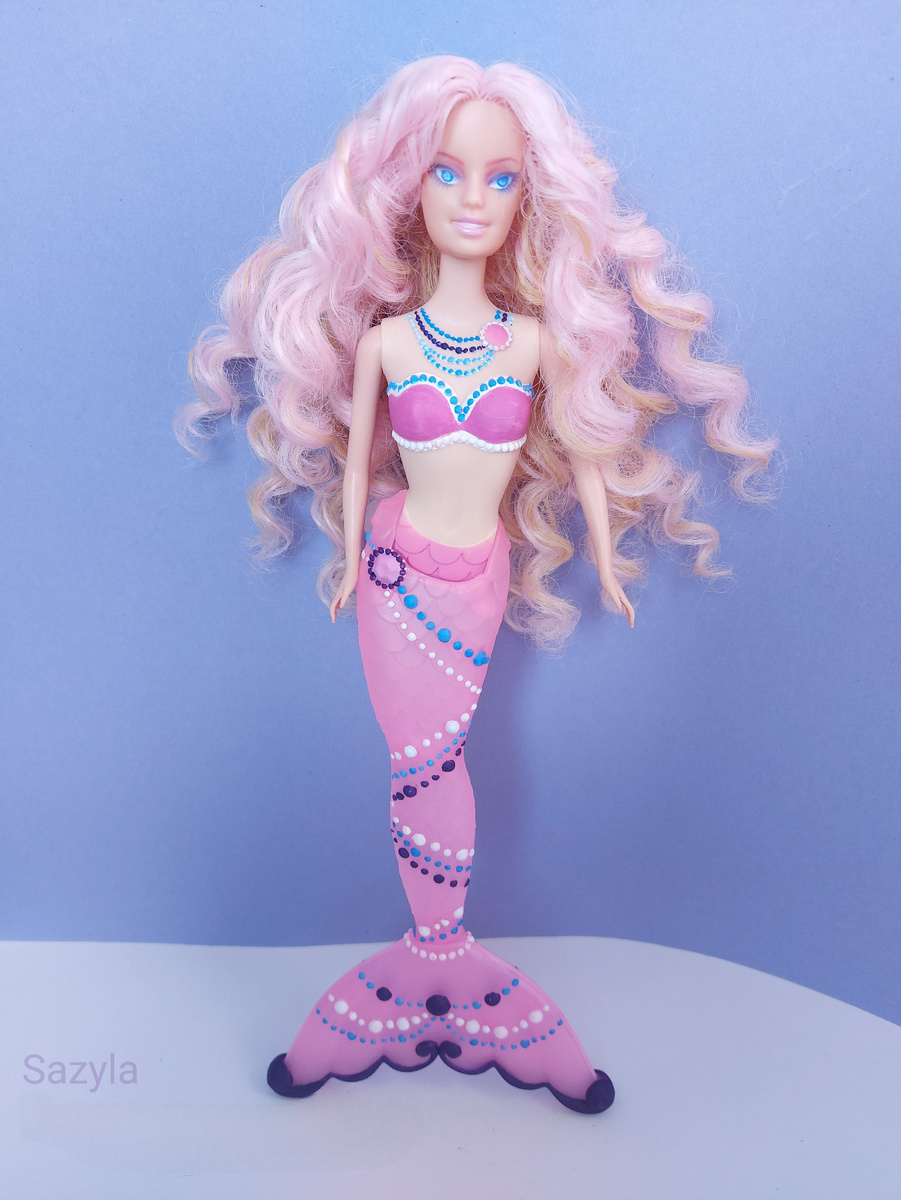 Меня восхишает умение людей рисовать красивые, детальные макияжи на барби. Тут и на голове МХ не всегда все получается, не то что уж на маленьком личике барби.. Сама я лезть в эту степь не собиралась. Так получилось, что очень давно я купила две китайские русалки в магазине по цене около 100 рублей и решила пустить их на эксперименты. Лицо одной мне нравилось, а у второй - ну совсем не подходило задумке. Обеих я перепрошила и подкрасила детали на теле. И все же решила перерисовать лицо второй русалки. Ee было не так жалко, даже если совсе ничего не получится. Первая попытка мне не особо понравилась. Я хотела более фентезийный макияж для русалки, a в итоге он просто получился бледным и невыразительным. Да и сложно разгуляться на таком крошечном пространстве. После этого я долго не решаласьк ней подступится. Не была уверенна, что именно хочу увидеть в результате. Но недавно пришло время что-то решать с ней. Я чищу коллекцию, избавляюсь от ненужных кукол. И если я не нашла к ней подхо