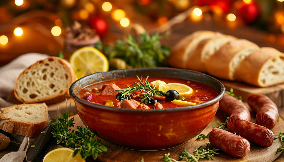 После шумного новогоднего застолья на утро часто остаются продукты, которые жалко выбросить, но и в таком виде есть их уже не хочется. Самое время дать остаткам вторую жизнь и приготовить из них что-то вкусное и полезное. Например, сварить горячий суп солянку – идеальный вариант после бурной ночи, особенно если ваш организм требует восстановления после употребления спиртного. Солянка как нельзя лучше подходит для того, чтобы использовать остатки мясных нарезок. Ее кисло-солёный вкус, сочетание мясных деликатесов и горячий бульон – то, что нужно, чтобы вернуть силы и придти в чувства. Скорее всего, у вас уже есть все, что нужно, чтобы приготовить этот суп. Достаточно просто заглянуть в холодильник! Вот что можно использовать: Нарежьте все мясные продукты небольшими кусочками. Чем больше разнообразия – тем вкуснее будет солянка. На сковороде с растительным маслом слегка обжарьте мелко нарезанный лук до золотистого цвета. Добавьте к нему томатную пасту и тушите пару минут. В кастрюле дов
