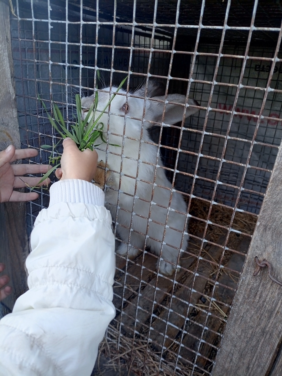 Всем привет, дорогие друзья. Долго думая какое же нам хозяйство завести решили приобрести кроликов. Они менее затратны, тем более что по весне муж накосил сена и заложил на чердак и теперь наши кролики не будут голодать, к тому же у нас всё еще растет свежая травка и они прекрасно себя чувствуют. Назвали их Снежок и Мая. Такие прекрасные, дети счастливы, им очень нравится их кормить и гладить, ведь они такие мягенькие как облачко. Главное уследить что бы дети закрывали клетку🤭 Сейчас у нас прекрасная погода, как будто весна, два дня была температура воздуха 20-17 градусов, какая красота, так хорошо ❤️. Хотя буквально неделю назад лежал снег, а перед этим так же 18 градусов. Вот такая изменчивая температура. Желаю всем хорошей погоды и прекрасного настроения💐🌸☀️