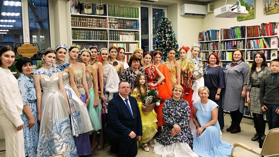 11 декабря в арт-зале Воронежской модельной библиотеки № 32 имени Г.Н Троепольского состоялось дефиле «Времена года: поэзия ткани», посвящённое Году семьи и грядущим новогодним праздникам. Открылась встреча видеороликом о временах года с живым музыкальным сопровождением в исполнении струнного трио «TWELVE» в составе артиста оркестра Воронежского государственного театра оперы и балета Маргариты Глазуновой, её коллеги из оркестра Воронежского концертного зала Дарьи Кашаевой, педагога дополнительного образования Детского спортивно-образовательного центра Дины Осиповой. Для студентов, приехавших к нам учиться из Бангладеш, Непала и Мали, а также гостей и читателей библиотеки присутствие профессионального музыкального коллектива стало неожиданностью. - Жизнь каждого человека делится, подобно сезонам года, на четыре периода: детство, юность, зрелость и старость, - сказала заведующая Наталья Бабайцева. - Коллекция дизайнерских платьев Галины Толкачёвой – это двенадцать образов. Сегодня у г