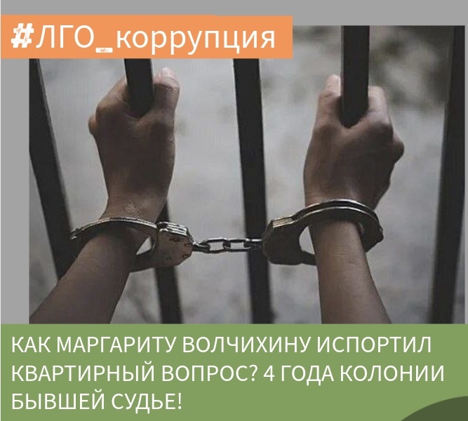 Этой осенью Раменский городской суд Московской области приговорил экс-судью Видновского городского суда Маргариту Волчихину к 4 годам колонии общего режима за совершение мошеннических действий в составе группы лиц и с использованием служебного положения (часть 4 статьи 159 Уголовного Кодекса Российской Федерации).