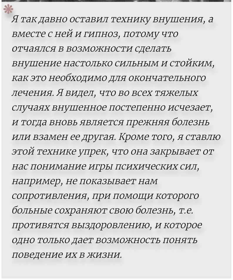Ровно 120 лет назад, 12 декабря 1904 года Зигмунд Фрейд в венской врачебной коллегии зачитал свой доклад "О психотерапии". В этом докладе, где Фрейд старался убедить собравшихся врачей, что психотерапия должна стать методом лечения, равноправным с соматическими, встречается несколько интересных моментов, которые я для себя выделила в 5 пунктов. 1. Во-первых, Фрейд в докладе отметил, что психотерапия зародилась не с изобретением психоанализа, а гораздо раньше. При этом Фрейд упомянул не только методы психотерапии, применявшиеся "в примитивной и античной медицине", но и сослался на метод психотерапии, когда больного с целью исцеления приводят в состояние «верующего ожидания» (вероятно, здесь Фрейд имеет в виду Эмиля Куэ, о котором я ранее писала здесь: Эмиль Куэ и его метод самовнушения). Также Фрейд перечислил другие существовавшие на тот момент методы психотерапии: "Мы выработали технику гипнотического внушения, психотерапии при помощи чтения; упражнения, вызывания целесообразных аффек