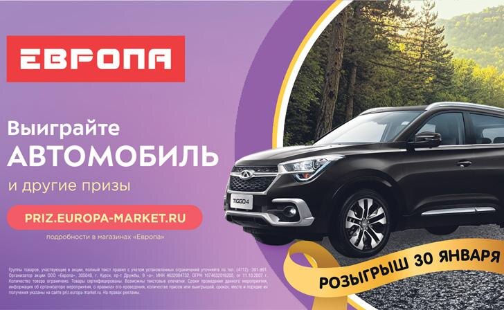 Стать владельцем роскошного кроссовера Chery можно почти даром. Покупайте в магазинах «Европа» с картой «Город товаров» на сумму от 100 рублей и регистрируйте чек на сайте priz.europa-market.ru. Важный момент – одним из товаров в чеке должна быть продукция собственного производства торговой сети «Европа». • ноутбук Lenovo;