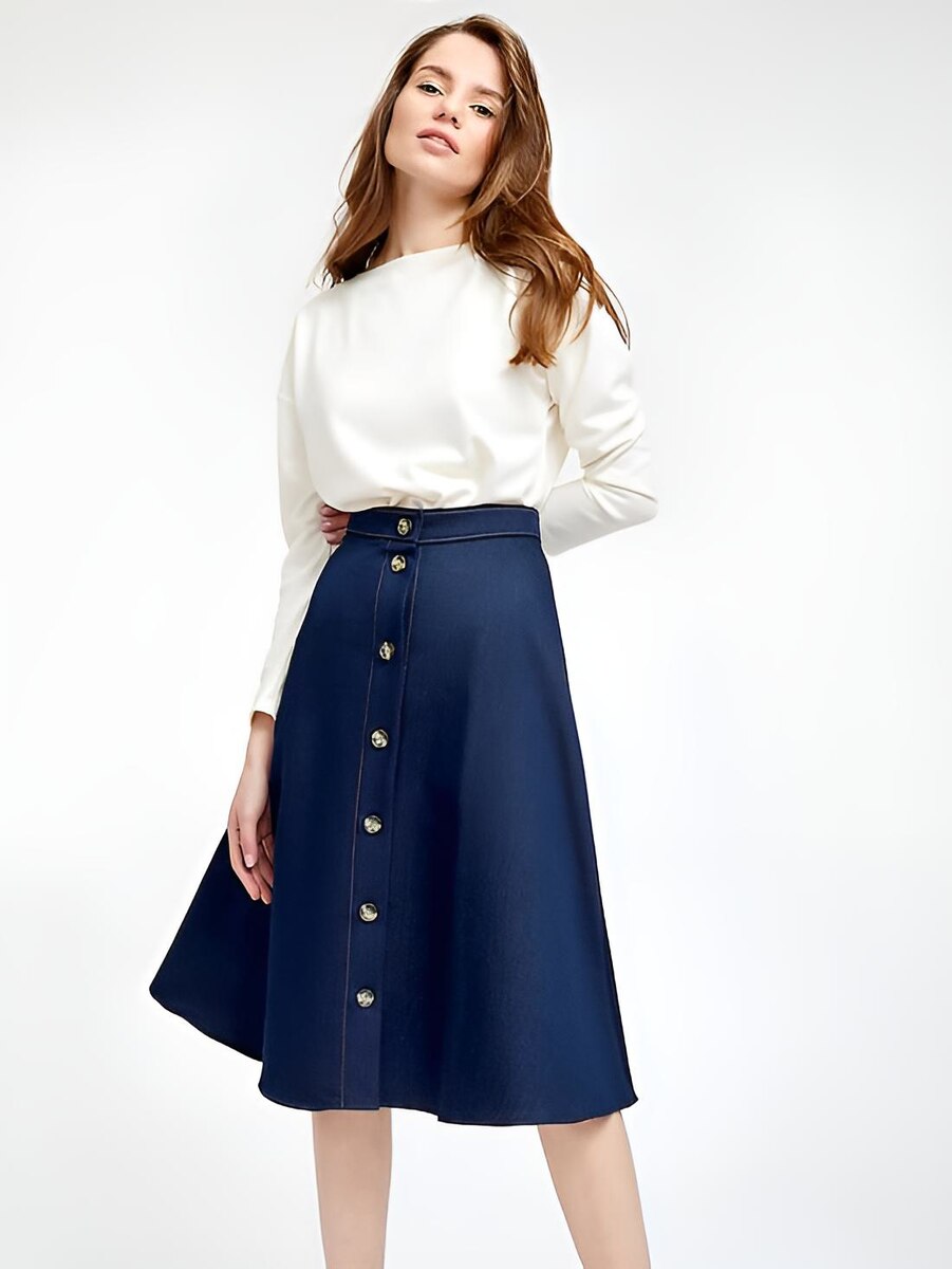 В 2025-м можно смело носить юбки А-силуэта, пошитые из костюмной или джинсовой ткани, сатина, кожи.