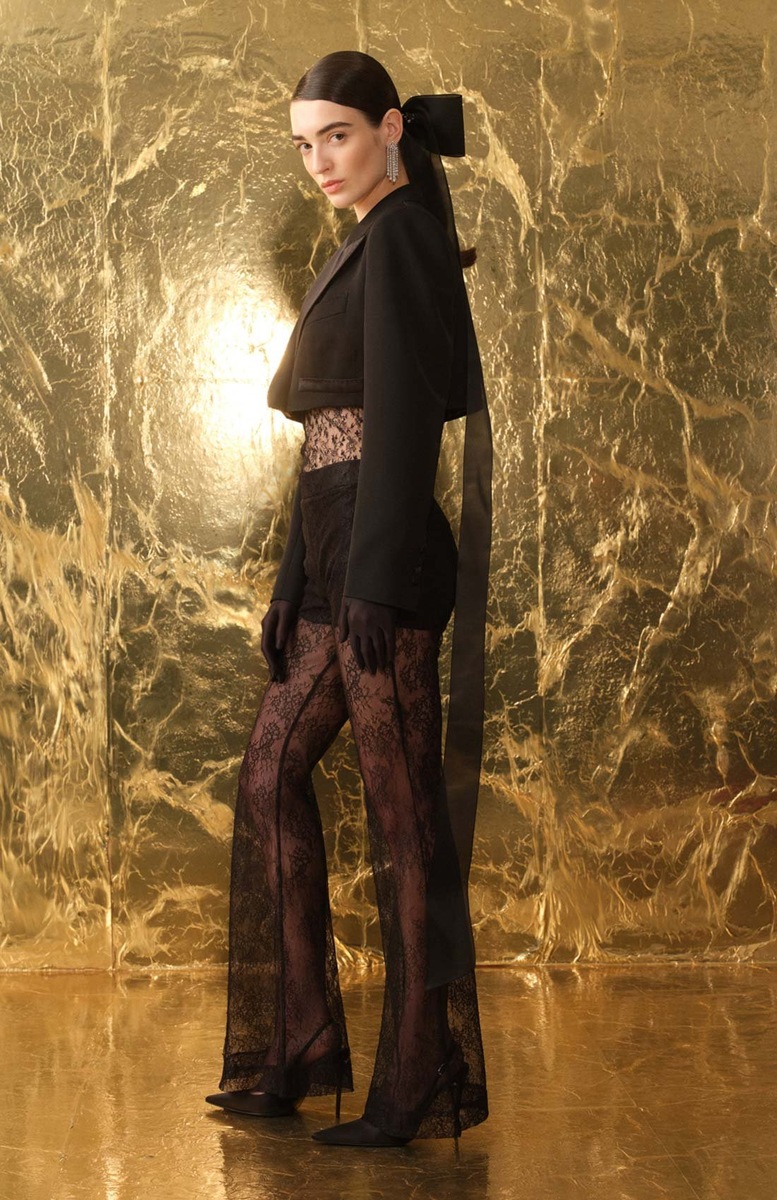 Главный вопрос, который сейчас интересует всех девушек, это "в чем блистать на новогодних праздниках"? Хочется выглядеть модно и стильно, быть в тренде и при этом не потратить кучу денег. Вопрос сложный, но вполне решаемый! Предполагаю не мелочиться и замахнуться на подиумый образ, но без огромных вложений! Совсем недавно ЦУМ провел зимний показ TSUM Fashion Show. Модели вышли на подиум в вещах из коллекций Dolce & Gabbana, Valentino, Bottega Veneta, Balenciaga, Giorgio Armani и многих других брендов сезона осень-зима 2025. Мне пришла в голову идея повторить подиумный образ и при этом сохранить бюджет! Смотрится очень женственно и при этом не вульгарно. Разберем, из чего состоит это образ: Обращая стоимость лука 759 250 рублей. Нехило! Я собрала похожий образ на маркетплейсе :) Итак, вот что у меня получилось : Цельный образ, который состоит из тех же элементов. Подробнее со ссылками: Штаны из гипюра Кружевное боди Укороченный жакет Туфли Перчатки Бант для волос Стоимость да