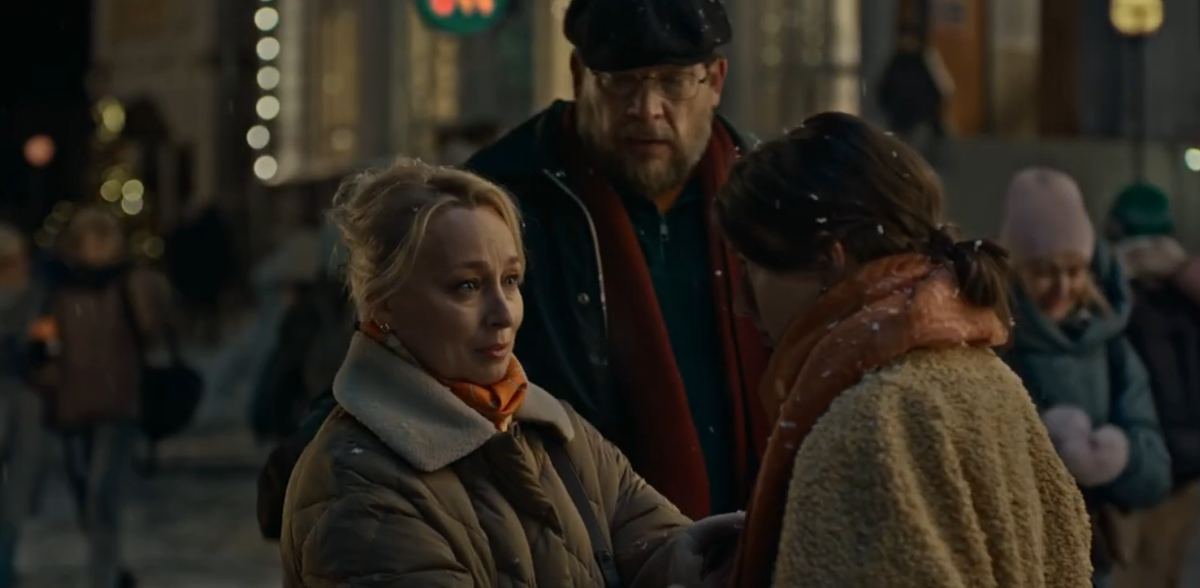 Сеть кафешек быстрого питания под названием "Вкусно - и точка" снял Зимний и трогательный рекламо-ролик для продвижения своего нового "Зимнего Комбо". По сюжету: родители провожают взрослую дочку и не решаются с ней говорить откровенно. Им кажется - она обидится, если спросить про ее жизнь. Дочка, в свою очередь, считает, что родителям ее жизнь неинтересна, и потому они о ней не спрашивают. Все меняется, когда дочурка видит подталкивающую фразу. Главный из продуктов этого Комбо (готовый набор) некий "пирожок тепла". На всех упаковках данных пирожков написали разные трогательные фразы, которые, по мнению данного бренда, могут помочь близким наладить отношения и общение. Иногда эти фразы попадают в точку (как в рекламе), иногда впросак и нелепы. Хочется напомнить, что все мы люди, и никого ближе родных у нас нет. Рекламный текст: -Мы тебя до поезда проводим. -Да не надо, ещё полчаса. -Ну пошли, погреемся хоть. Ничего про себя не рассказывает. Им не интересно, чем я живу. А спрос