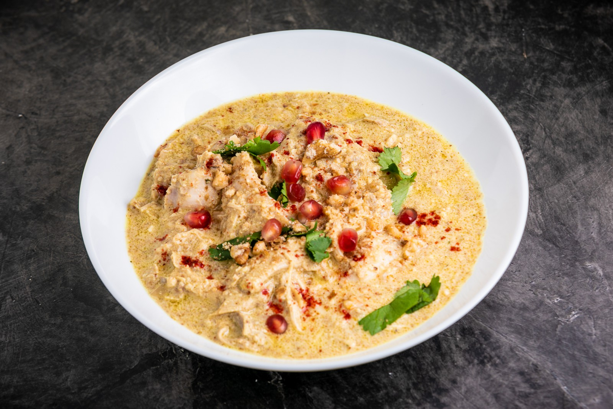 Новогодний стол в Грузии невозможно представить без сациви – курицы в ореховом соусе, пряном блюде с очень колоритным, насыщенным вкусом. Это блюдо для грузинского новогоднего застолья – что селедка под шубой или оливье в России. Традиционно сациви готовят из курицы или индейки в ароматном ореховом соусе с изысканными специями. Ингредиенты: • Курица (цельная или части) — 1,5–2 кг • Лавровый лист — 2 шт. • Перец горошком — 6–8 шт. • Лук — 1 шт. • Соль — по вкусу Для орехового соуса: • Грецкие орехи (очищенные) — 500 г • Чеснок — 4–5 зубчиков • Кинза (семена кориандра) — 1 ч. ложка • Уцхо-сунели — 1 ч. ложка • Хмели-сунели — 1 ч. ложка • Шафран (по желанию) — 0,5 ч. ложки • Красный молотый перец — по вкусу • Лук — 1 шт. • Куриный бульон — 500 мл • Белый винный уксус или сок лимона — 1–2 ст. ложки Этапы приготовления: 1. Курица тщательно моется и отваривается в подсоленной воде с добавлением лаврового листа, перца горошком и целой луковицы. 2. Варите курицу до готовности (около 40 минут),