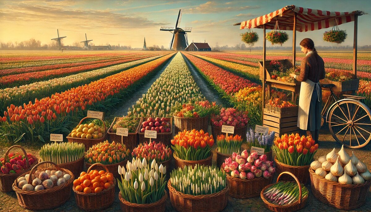 Когда мы думаем о Нидерландах, тюльпаны неизбежно всплывают в нашем воображении. Яркие поля, уходящие за горизонт, и фотографии в соцсетях и СМИ сделали эти цветы символом страны. Но знаете ли вы, что тюльпаны — это лишь верхушка айсберга, а в реальности Нидерланды — это аграрное чудо, где растет невероятное разнообразие растений? Тюльпаны: сезонная корона Да, тюльпаны действительно правят весной. С марта по май миллионы туристов посещают парк Кёкенхоф и поля Лиссе, чтобы увидеть эти цветы во всей красе. Но на самом деле, их сезон — это всего лишь несколько месяцев. А что же происходит в остальные времена года? Цветы, которые растут круглый год Нидерланды — мировой лидер по экспорту цветов, но тюльпаны далеко не единственные в этом списке. 1. Розы — королевы экспорта Розы выращиваются в Нидерландах в огромных теплицах, которые работают круглый год. Благодаря инновационным технологиям климат-контроль и освещение позволяют выращивать цветы в любых условиях. 2. Орхидеи — символ роскоши Эт