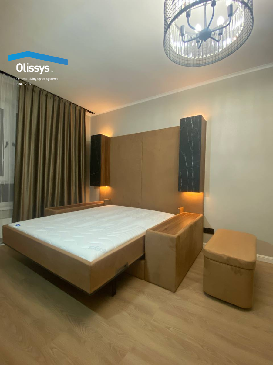 На фото — модуль-трансформер Olissys Mono 2.0 с диваном с широкими подлокотниками с функцией хранения. Внутрь ниши удобно складывать одеяла или подушки. А когда разложено спальное место, подлокотники служат прикроватными тумбами. В качестве материалов выбраны природные фактуры: - Матовые фасады с шелковистой поверхностью из коллекции Mattelux в оттенке камня. - Каркас в фактуре натурального дерева ореха. - Ткань в песочном оттенке из коллекции Smile – натуральная замша. Проект дополнен функциональным пуфом, выполненным в уже знакомых нам материалах. Габариты конструкции: высота — 2060 мм, глубина — 300 мм, ширина — 2420 мм. Размер спального места — 160 см. Купить мебель Olissys можно с помощью беспроцентной рассрочки до 500 000 рублей, сроком до 18 месяцев. Просто оставьте заявку на сайте Olissys.com и дождитесь ответа. Рассрочку одобряют в 80% случаев. #мебельтрансформер #шкафкровать #диванкровать #мебельназаказ