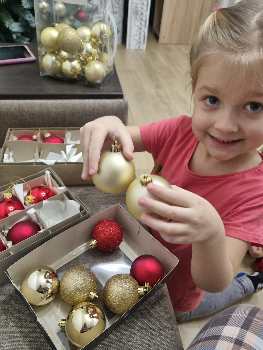 В последнее время мне катастрофически не хватает ещё хотя бы парочки дополнительных часов в сутках. Дел, задач много и хочу/надо часть закончить в этом году. Очень выручает мой график с 9 до 17, близость работы к дому и помощь близких с ребёнком. Иначе я не знаю как бы все успевала, тем более писать статьи. Да и сейчас, честно признаться, статьи пишутся сложновато. Голова забита другим и именно вкладываться в статьи редко когда получается. С телевизором то определиться не могу🙈 Поэтому сегодня я кратко поделюсь нашими небольшими новостями: Мы нарядили нашу ёлочку. Тем же составом, что и три года назад: я, Ксюша и моя средняя сестра Лиза. Поняла, что ни разу не рассказывала как зовут моих сестёр и брата. Сестры Лиза и Маша, а брат Кирилл. Елка у нас искусственная, высотой вроде бы 1,5 метра. Украшали шарами, они у нас золотого и красного цвета. Часть игрушек я докупила ещё в этом году. Ксения очень ждала этого события и старательно украшала. Это будет её первый настолько осознанный