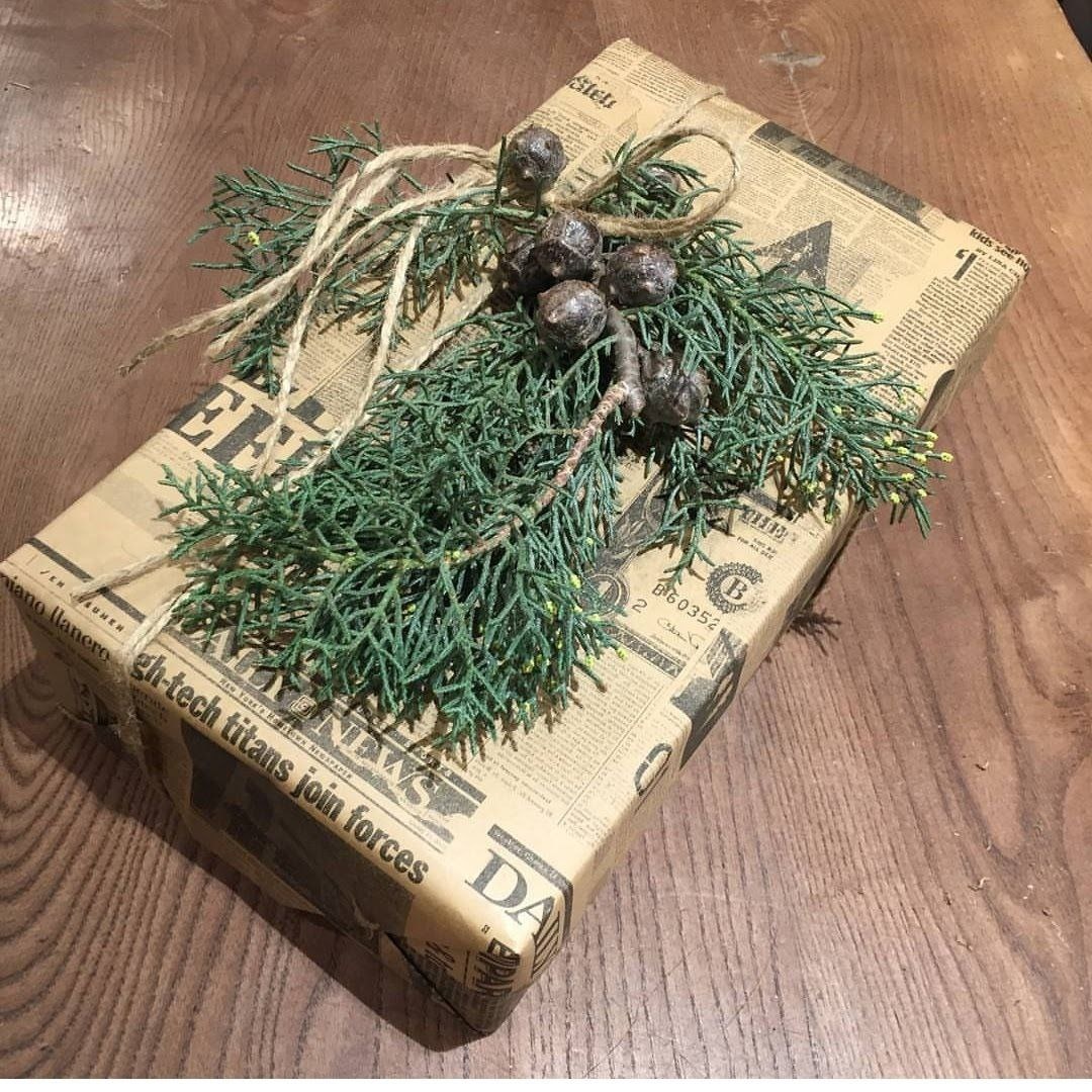 Описание композиции упаковки подарка: Эта композиция представляет собой оригинально оформленный подарок, завёрнутый в бумагу с ретро-принтом, декорированный веточкой можжевельника и натуральной верёвкой (шпагатом). Добавление природных элементов, таких как хвойная веточка и шишки, придаёт упаковке естественный и уютный вид. Такой декор добавит подарку оригинальности и подчеркнёт ваше внимание к деталям, создавая тёплую и праздничную атмосферу!